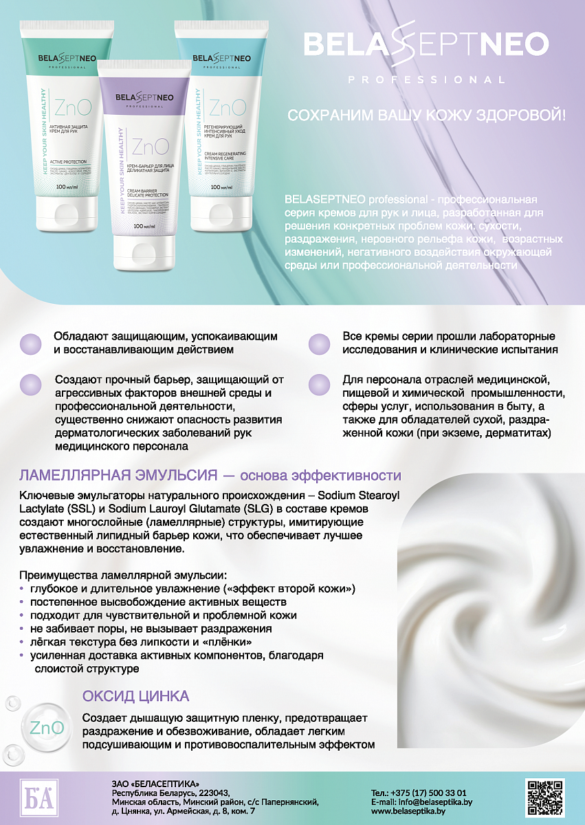 Компания ЗАО «БЕЛАСЕПТИКА» представляет новую серию профессиональных кремов для рук и лица BELASEPTNEO professional — KEEP YOUR SKIN HEALTHY!